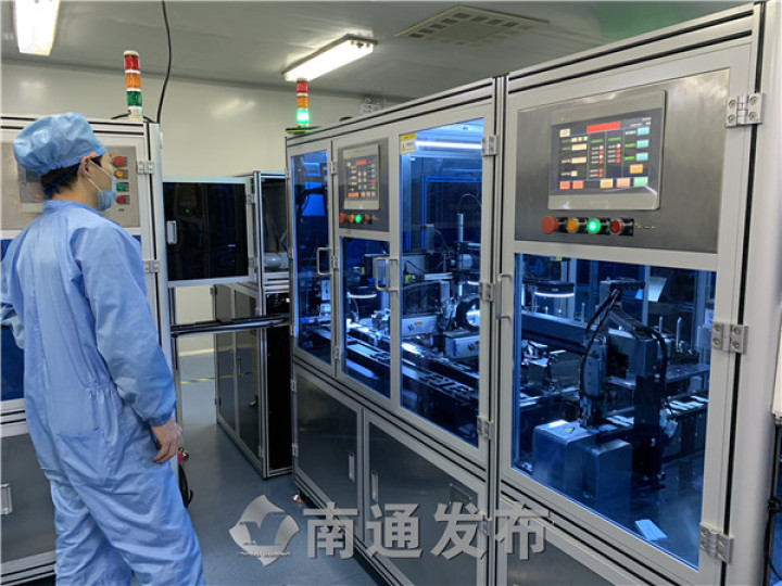 10月30日,南通伊仕生物技術(shù)股份有限公司生產(chǎn)車間內(nèi),一臺臺自主研發(fā)的全自動化設(shè)備馬力全開,零星的幾個工作人員身穿潔凈防護服,只需動動手指操作控制面板。分切、組裝、入袋包裝、批號打碼……一個個小小的試劑板從這里誕生,被運往世界各地,日產(chǎn)量約170萬人份。