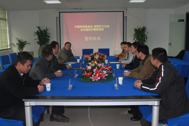 2013年12月7日上午,南通市伊士生物技術有限責任公司在伊士生物研究院會議室舉行了“中國禁毒基金會-南通伊士生物合作建設中國禁毒網(wǎng)簽約儀式”。中國禁毒基金會秘書長李憲輝先生,江蘇省公安廳禁毒總隊副總隊長陳紅淦先生,省公安廳和市公安局相關領導共7人出席了簽約儀式。
