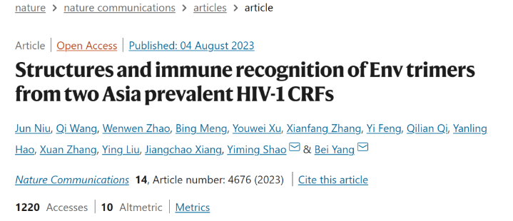 近日,上??萍即髮W(xué)免疫化學(xué)研究所楊貝課題組與中國疾病預(yù)防控制中心性病艾滋病預(yù)防控制中心團隊合作在國際學(xué)術(shù)期刊《自然通訊》(Nature Communications)上發(fā)表題為“Structures and immune recognition of Env trimers from two Asia prevalent HIV-1 CRFs”的研究論文,報道了我國HIV-1病毒的主流亞型(即流行重組亞型CRF01_AE和CRF07_BC)的Env蛋白結(jié)構(gòu)與免疫識別特征,揭示了CRF01_AE亞型的Env蛋白在V1區(qū)域的獨有特征及其與該亞型的廣譜中和抗體逃逸能力之間的關(guān)系,并闡明了第一株分離自CRF01_AE感染個體的廣譜中和抗體的新型中和機制。該研究拓寬了對于HIV-1流行重組亞型的認識,為后續(xù)針對我國主流HIV-1亞型開展免疫聚焦型疫苗設(shè)計和相關(guān)廣譜中和抗體的應(yīng)用開發(fā)提供了理論依據(jù)。